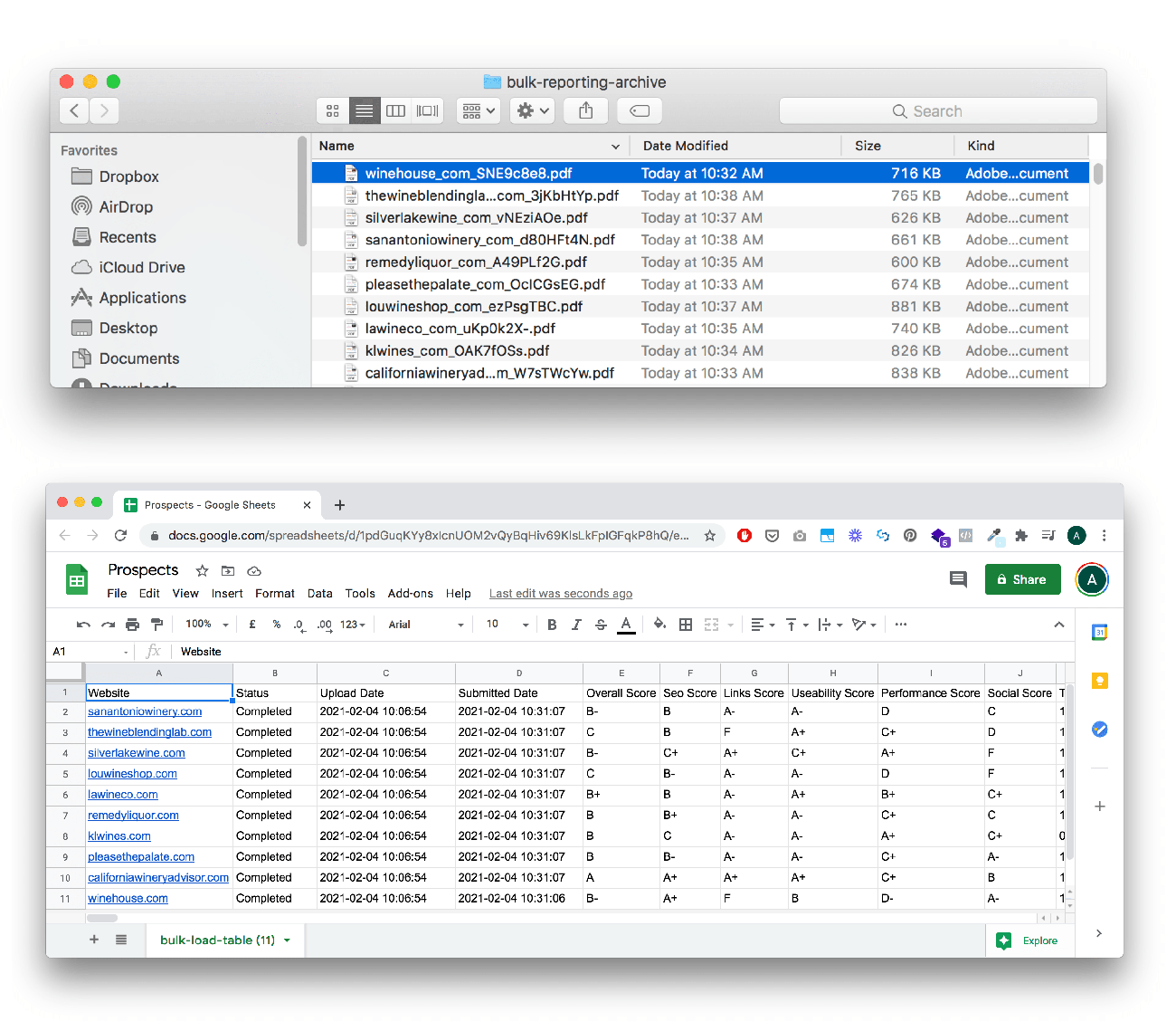 Alternatively, you can download a collated CSV file of all reporting results down to the individual check and website level. Performed detailed spreadsheet analysis to find prospects with the biggest issues, where you can deliver the most value.