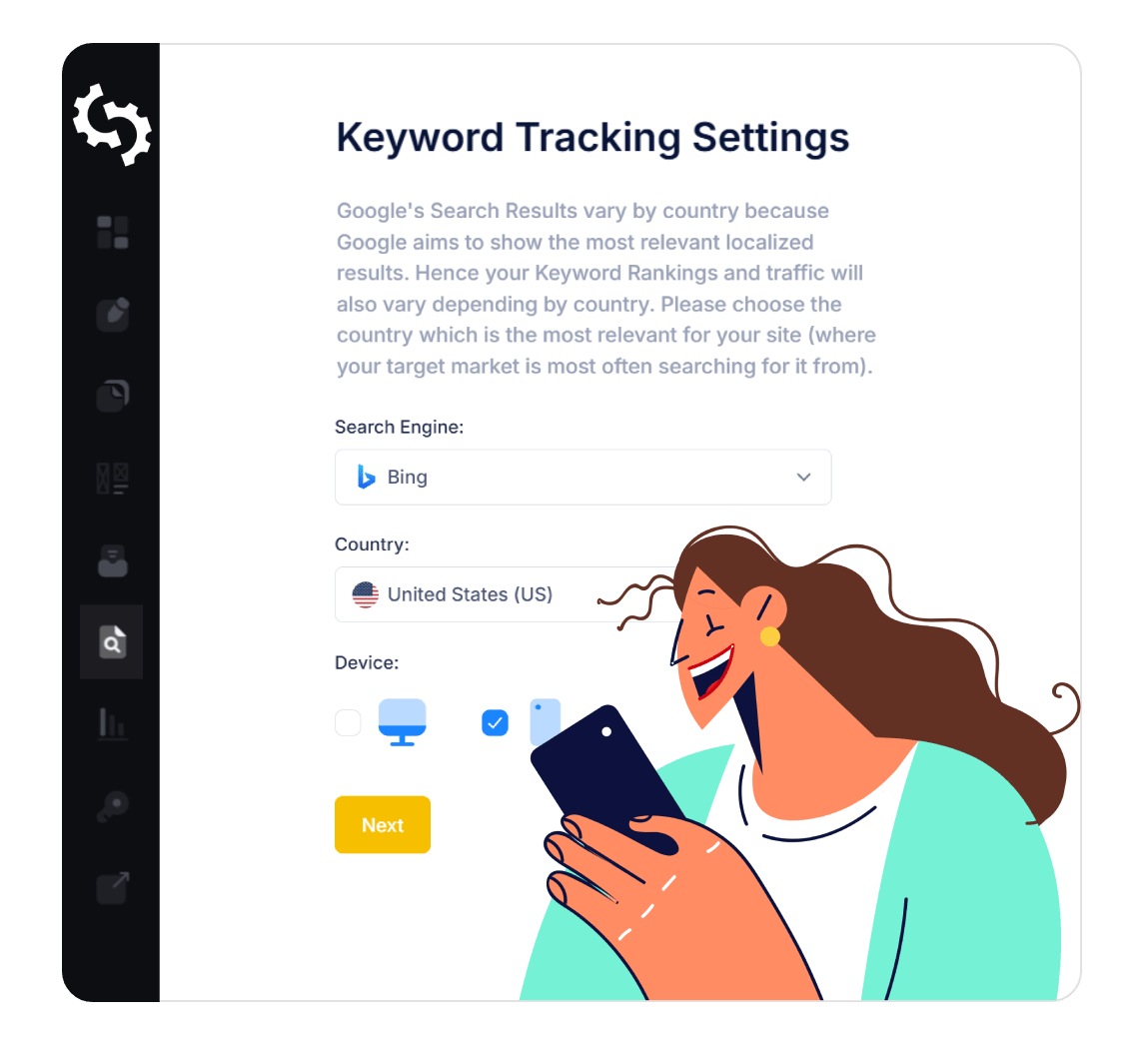 SEOptimer’s Mobile Rank Tracker makes it super easy to check and monitor your mobile keyword rankings in Google & Bing across various countries and regions.
